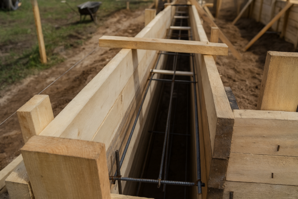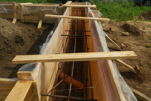 - Характеристики самого грунта в месте, где изготовляется ленточная опалубка, соответствуют требованиям. Возможна заливка бетонной смеси сразу в котлован. Но это не очень желательный вариант.
